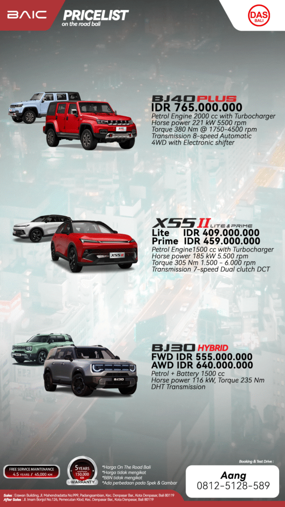 Berikut adalah harga OTR BAIC di Bali bulan November 2025 :